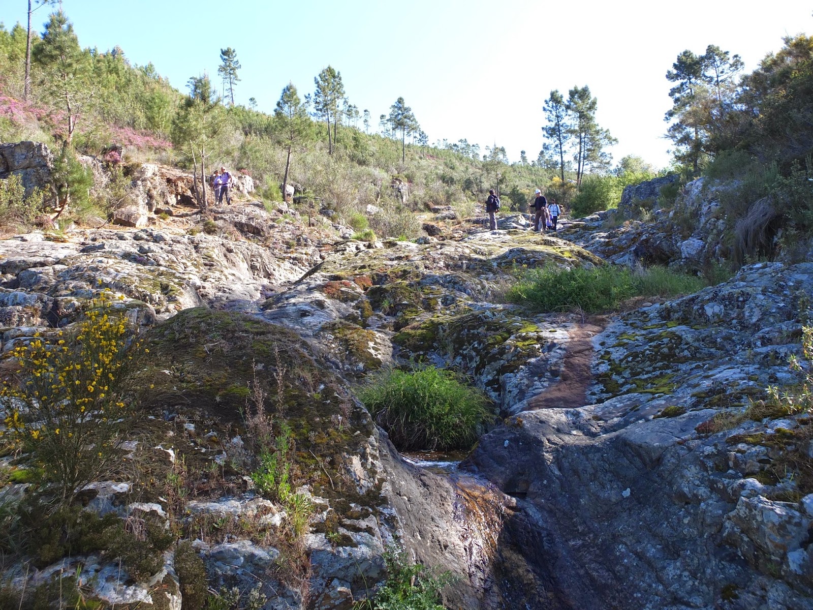 Era dia de feira em Vila de Rei. O povo começou a juntar-se bem cedo e a azáfama era geral. Desjejuados em estabelecimento local, rumámos a oeste pelo PR1 VLR também conhecido por trilho das cascatas, direitinhos à cascata do Escalvadouro. A água da ribeira do Lavadouro é abruptamente obrigada a cair na vertical por uma parede de cerca de 10 metros criando um efeito que é sempre bonito de se ver. A descida até à estrada que nos levaria à ponte sobre o Zêzere, faz-se por um trilho estreito e inclinações por vezes pronunciadas, a vegetação ameaça abraçar-nos, enfim, a obrigar a cuidados especiais para evitar quedas e escorregadelas.
