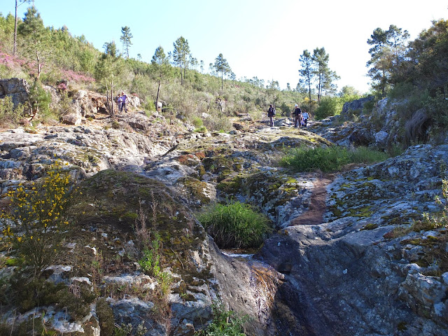 Naturalmente, nunca prescindimos de seguir as ordens do nosso estratega Xoaquim Branco que, a cada Alminhas, nos comandava em frente marche, esquerda volver, direita volver, depois de consultar o seu apêndice GPS. Os vestígios do gigantesco incêndio de 2003 que cinzentou quase 80% da área florestal do concelho de Vila de Rei, ainda são perceptíveis, pese embora a mãe natureza, na sua infinita paciência, os venha cuidadosamente apagando. Se assim não fosse, se a mãe natureza não desse uma mãozinha, ficaria comprometido o objectivo dos senhores autarcas que projectaram e mandaram construir a piscina fluvial de Cardigos, um espaço agradável, seguramente refrescante no estio.